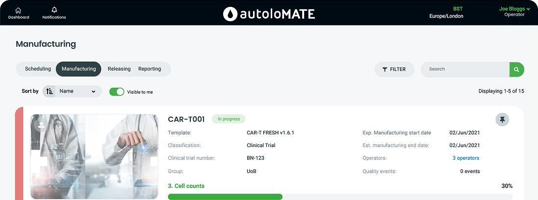 We empower Advanced Therapy manufacturers to gain new insights and efficiencies within their workflows, supporting them from Development and Clinical Trials towards Commercialisation. To achieve this, we streamline the management of manufacturing data, by integrating siloed information into one digital platform: AutoloMATE®.